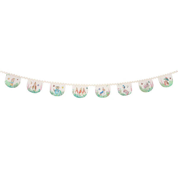 - 8 Banderines de tela de polialgodón festoneado con Peter Rabbit y sus amigos