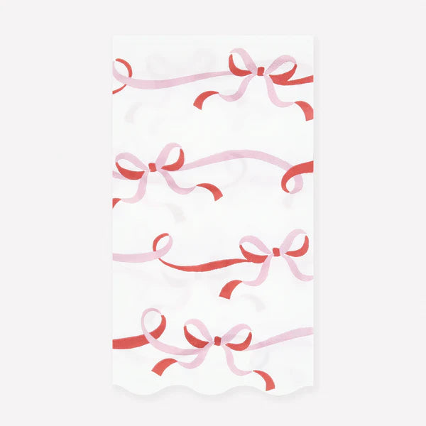 Los lazos de cinta rosa y roja son el diseño perfecto para un look navideño elegante sin esfuerzo. El rico rojo cálido aporta un encanto festivo clásico, los suaves acentos de rosa y oro en foil dan un giro contemporáneo, y el diseño del lazo añade un toque de moda. Estas toallas de papel navideñas, con maravillosos bordes ondulados, son ideales para colocar en tu baño de invitados. También puedes usarlos para darle estilo a tu mesa de fiesta.