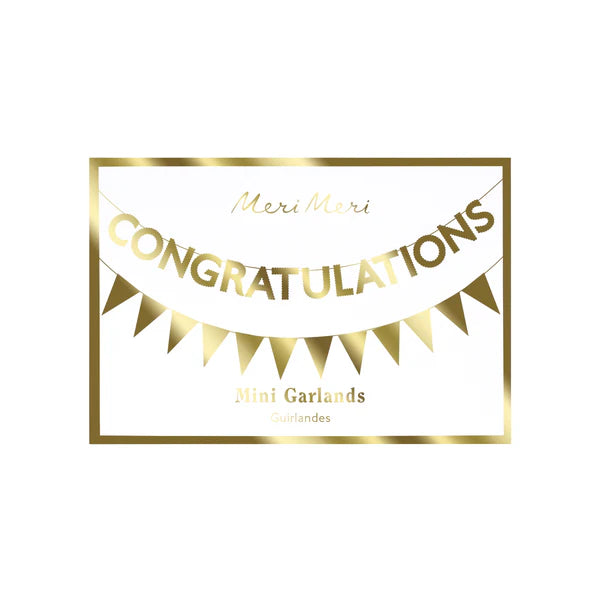 Estas guirnaldas de papel pueden ser miniaturas, ¡pero tienen un gran toque decorativo! El brillante color dorado añadirá un toque de asombro a cualquier celebración en la que se deban felicitaciones, como un baby shower, una graduación o un aniversario de oro. Son ideales para colgar en la mesa de fiesta o en la repisa de la chimenea, o en una ventana o en una puerta. Guarda en la caja tipo caja de cerillas cuando termine la fiesta y reúsalo una y otra vez.